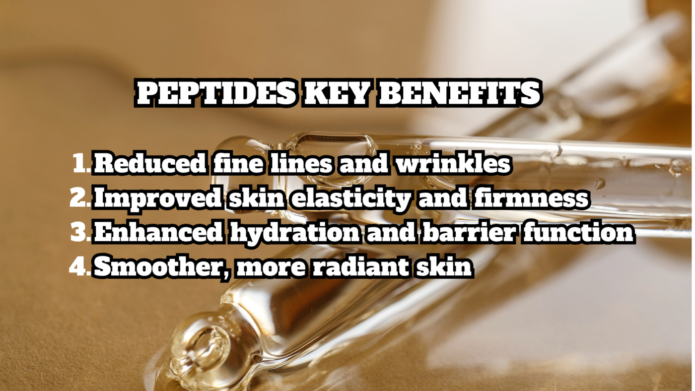 • Peptides can strengthen the skin’s barrier, which protects against environmental aggressors, such as pollution and UV rays, and helps retain moisture. This leads to smoother, more hydrated skin.