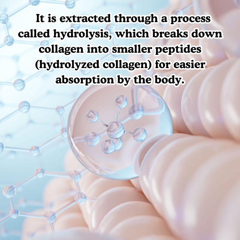 Marine collagen is derived from fish and other sea creatures, primarily from their skin, scales, and bones. It is extracted through a process called hydrolysis, which breaks down collagen into smaller peptides (hydrolyzed collagen) for easier absorption by the body.